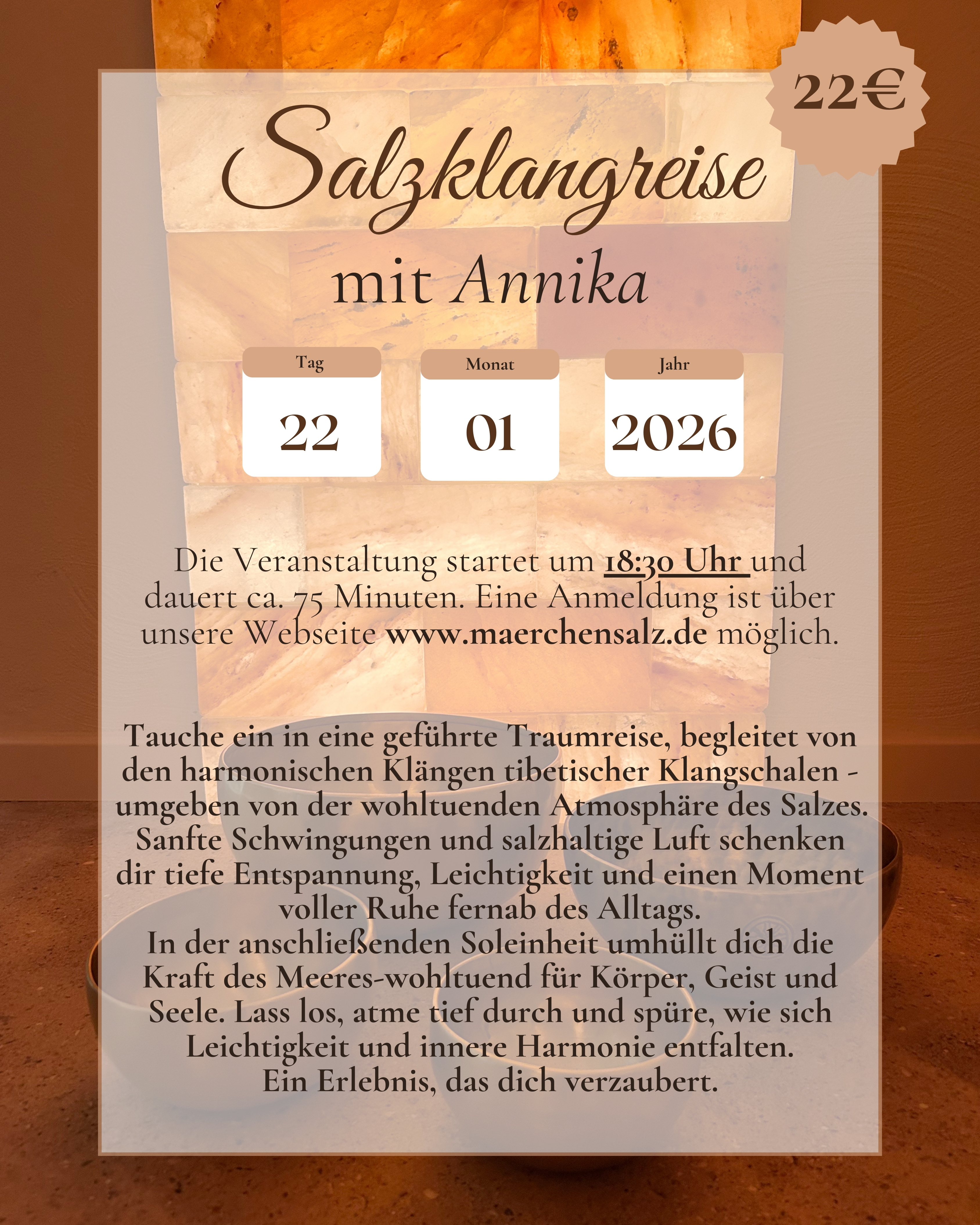 In unserer Soleoase erwartet Sie pure Entspannung und Stärkung Ihres Wohlbefindens. Der medizinische Vernebler sorgt für eine feine Solevernebelung mit einer Konzentration von ca. 2,5-5%, die ideal für die Linderung von Atemwegserkrankungen und Hautproblemen ist. Genießen Sie die beruhigende Atmosphäre, atmen Sie tief durch und lassen Sie den Stress des Alltags hinter sich.